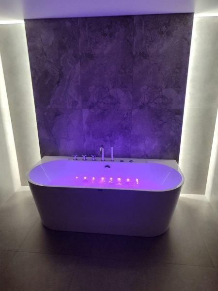 Все гидромассажные ванны Frank поставляются в максимальной комплектации и имеют множества функций. Ванна с гидромассажем Frank F109 пристенная с гидромассажем и подсветкой. В боковой стенке установлен звёздный дождь 8 точечных лучей. Форсунки расположены в ванне с учётом максимального массажа спины и поясницы и способствуют максимальному охвату поверхности тела при работе гидромассажного двигателя. Вся ванна сделана из литьевого акрила. Передний и боковые экраны бесшовные с ванной. Стоит система слива остатков воды из форсунков.